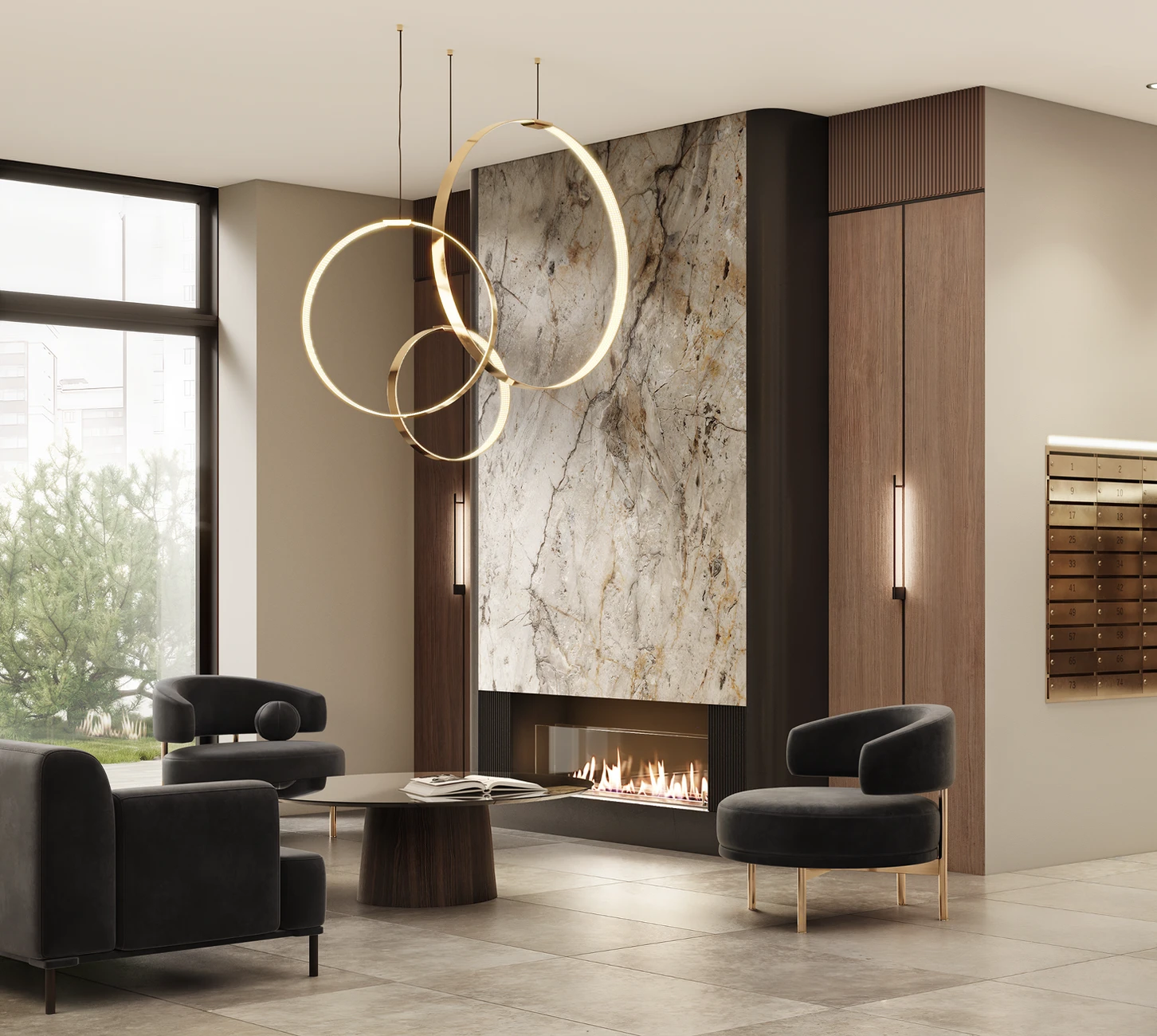 «ORO by Akvilon» — отражение внутреннего достоинства, достигнутых вершин и новых амбиций. Здесь каждая деталь говорит о статусе: от золотых акцентов на фасадах, переливающихся в солнечном свете, до впечатляющих гранд-лобби с камином, встречающих как в роскошном отеле.